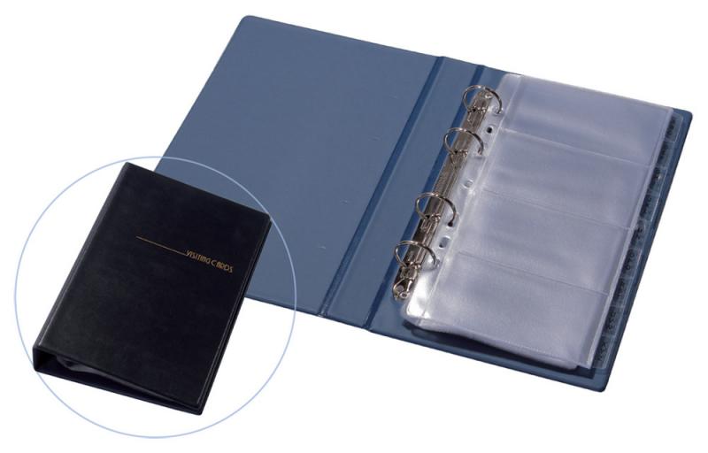 Визитница на кольцах Panta Plast на 200 визиток, винил, черная