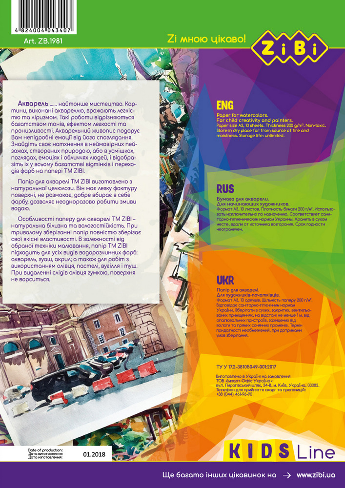 Бумага для акварели ZIBI: папка с 10 листами бумаги из натуральной целлюлозы плотностью 200 г / м2 для рисования красками бумага имеет легкую фактуру поверхности, не размокает, хорошо впитывает краску и позволяет делать при необходимости смывать водой по несколько раз в зависимости от выбранной техники подходит для всех видов водорастворимых красок (акварели, гуаши, акрила), а также для работы карандашами, пастелями, углем или тушью в картонной папке плотностью 230 г / м2 для удобной транспортировки и хранения формат - А3