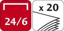 произведён на 97% из переработанного пластика, экологичная упаковка максимальное количество сшиваемых листов: закрытое и прямое сшивание открывается на 160° для удобной заправки скобами металлический механизм открывается на 160° для удобной заправки скобами металлический механизм вместимость контейнера для скоб: 100шт. №24/6, 130шт. №26/6 глубина закладки бумаги - 53 мм. гарантия: 3 года тип упаковки: коробка с подвесом