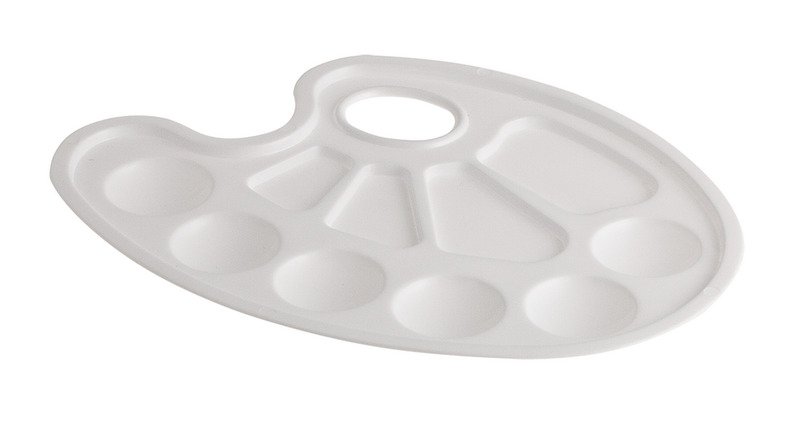 Пластиковая палитра для рисования предназначена для художественных работ с красками и для их смешивания. Используются качественные материалы. Имеет удобную форму. 6 углублений для красок. 4 углубления для смешивания красок. Удобное отверстие для руки.