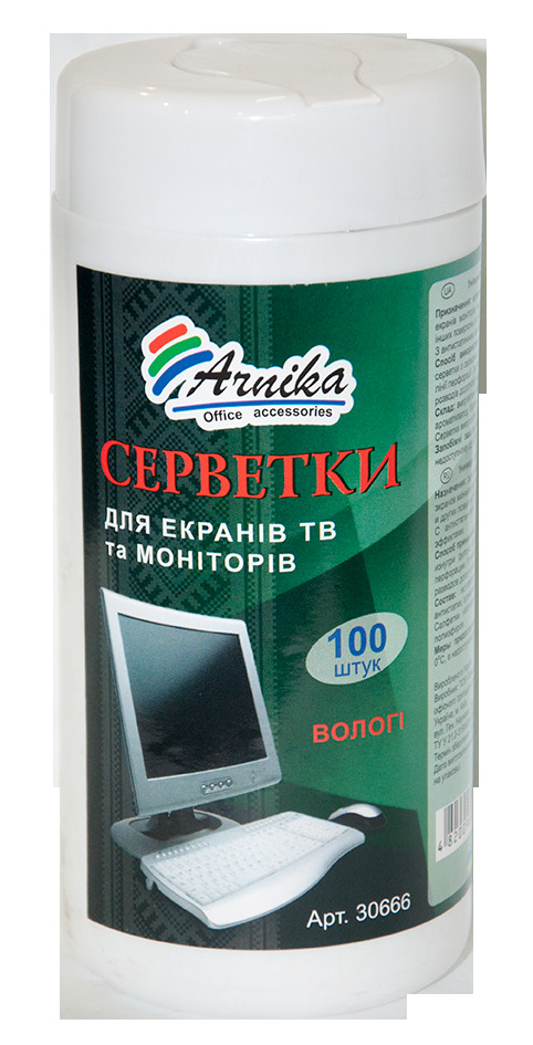 Салфетки влажные для экранов ТВ и мониторов, 100шт. в банке