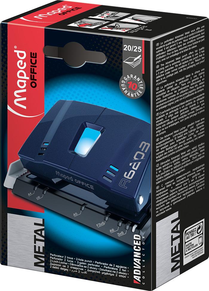 Дырокол металлический ADVANCED METAL, 20/25л., синий металлик