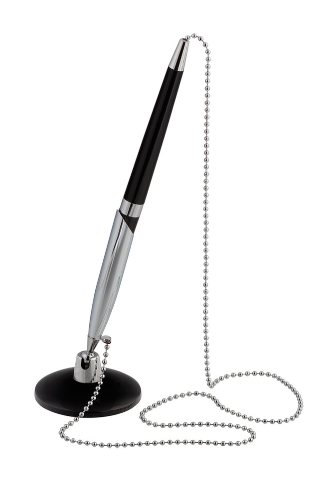 Шариковая ручка на подставке BUROMAX– для мест с большой проходимостью людей (ресепшн в офисе и отеле, банки, магазины и др.) в стильном дизайне с металлическими элементами. корпус ручки и подставки изготовлен из пластика в сочетании с металлическими хромированными деталями металлическая цепочка благодаря цепочке, ручка не потеряется самоклеящееся основание чернила на водной основе для мягкого и легкого письма цвет чернила: синий. Ручки BUROMAX – отличный пишущий инструмент на каждый день!