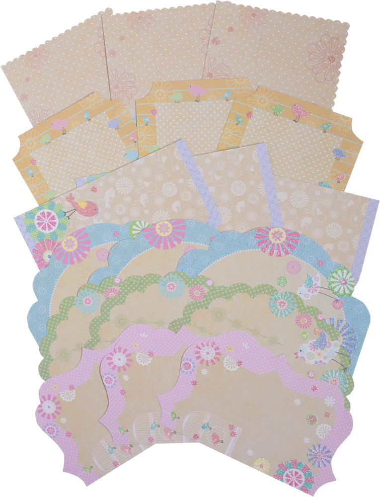 Набор DAISY для создания и декорирования оригинальных открыток (для скрапбукинга). 6 сетов разных дизайнов по 3 листа. В каждом сете 3 заготовки в одном дизайне: 1 заготовка с глиттером и 2 заготовки без глиттера. Заготовки выполнены в нежном кантри-стиле. Плотность бумаги 147 г/м2. С помощью набора Вы сможете оформить до 18 открыток. Кроме того, с помощью этого набора можно оформить альбомы для фотографий, конверты для денег и другие оригинальные и красивые поделки из бумаги ручной работы.