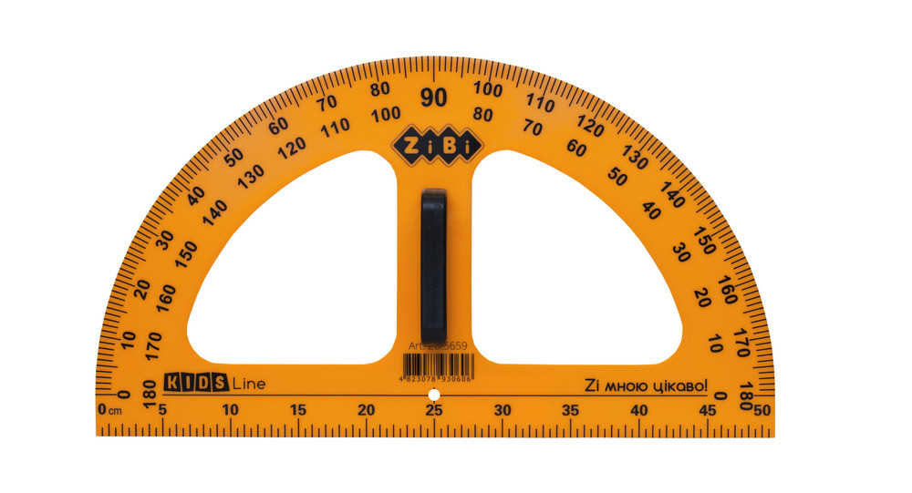 Транспортир TEACHERот ZIBI на 1800 для черчения на школьной доске станет незаменимым атрибутом при проведении тематических уроков для учеников. Характеристики: две шкалы для измерения острых и тупых углов деления через каждый 1 градус и оцифровкой каждых 10 градусов на линейке транспортира нанесены деления через каждые 0,5 см и сделана оцифровка через каждые 5 см сменный держатель черного цвета для удобного использования материал - ударостойкий цветной пластик цвет - оранжево-желтый индивидуальная упаковка – пузырчатая пленка