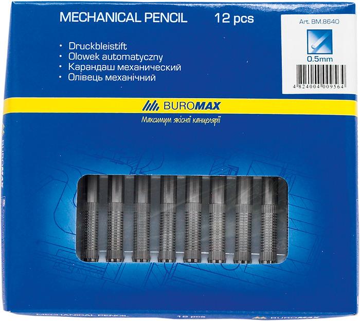 Карандаш механический BUROMAX – идеально подходит для письма, черчения тонких линий и рисования! Весь ассортимент механических карандашей представлен стильными и современными дизайнами. Металлический корпус серебряного цвета с рельефным металлическим грипом и металлическим клипом. Благодаря клипу, Вы можете зафиксировать свой карандаш в блокноте, ежедневнике, тетради и т.д.. Надежный механизм подачи грифеля. В наличии есть встроенный ластик и индикатор твердости грифеля.