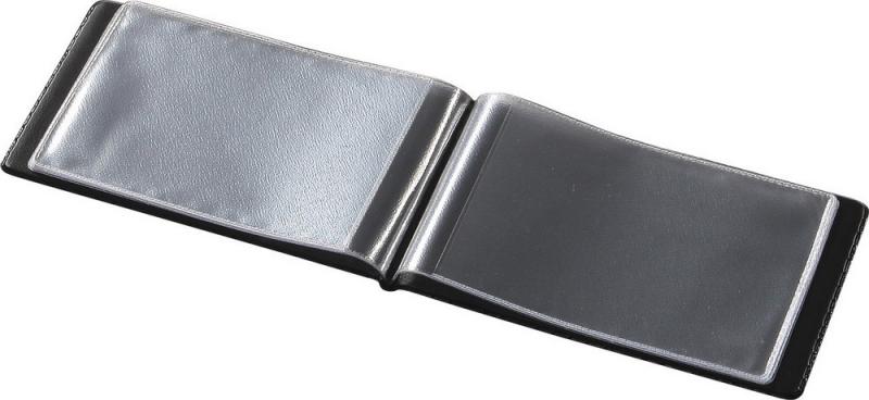 Карманная визитница для хранения банковских карточек и визиток стандартного размера. Удобный и полезный аксессуар. Визитница имеет строгий классический дизайн, внутренние карманы выполнены из прозрачного полипропилена, что позволяет прочитать всю информацию с обеих сторон карточки. Материал: ПВХ. Толщина файлов: 90 мкм.