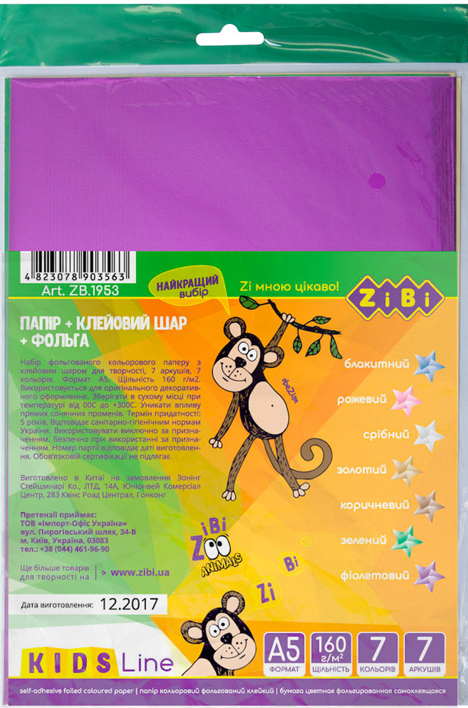 Набор цветной бумаги самоклеющейся Металлик, 7 листов А5: 7 цветов