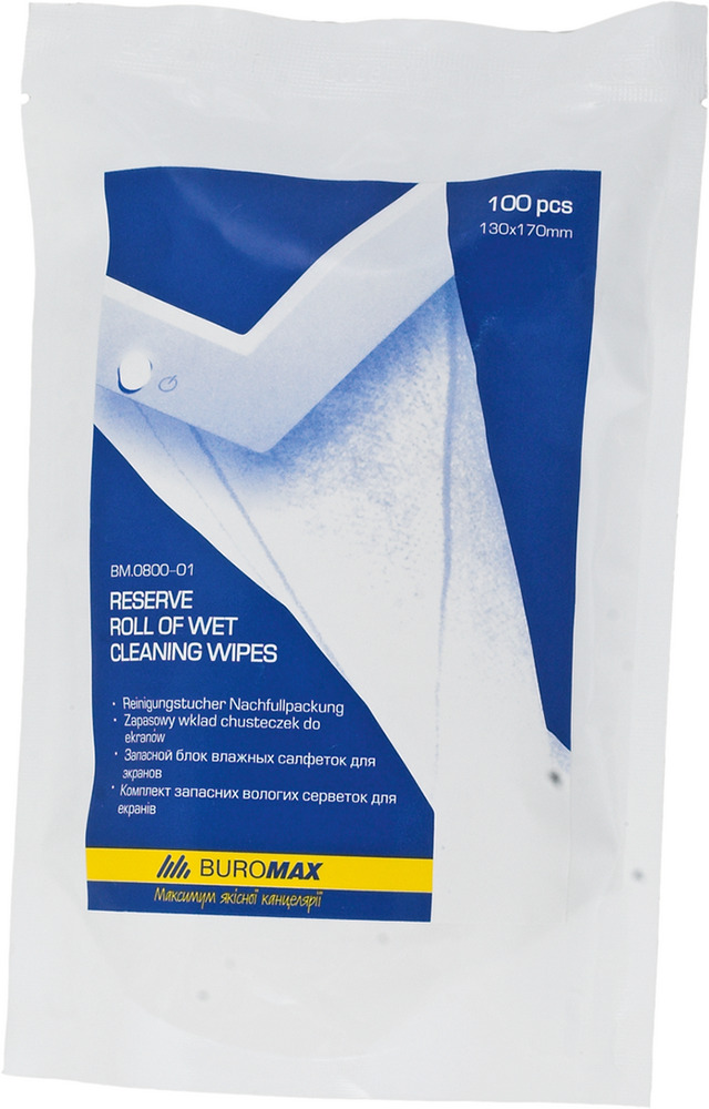 Салфетки BUROMAX для очистки экранов, мониторов, ноутбуков, сканеров и копиров, а также других стеклянных поверхностей. Влажные, пропитаны специальной чистящей композицией, не содержащей спирт и триклозан. Дезинфицируют обрабатываемую поверхность и безопасны для кожи рук. Устраняют статическое электричество. Изготовлены из биоразлагаемого материала на основе крепированной бумаги. 100 шт. в упаковке. Салфетки BUROMAX – чистота Вашей оргтехники!