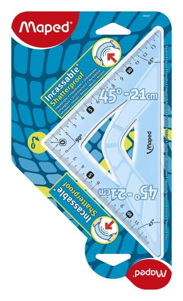Угольник UNBREAKABLE, 45гр/210мм (гипотенуза), ударопрочный пластик, блистер