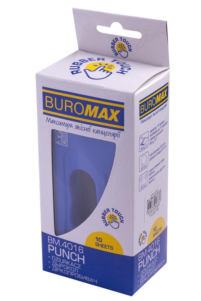 Дырокол пластиковый RUBBER TOUCH (до 10 л.), синий
