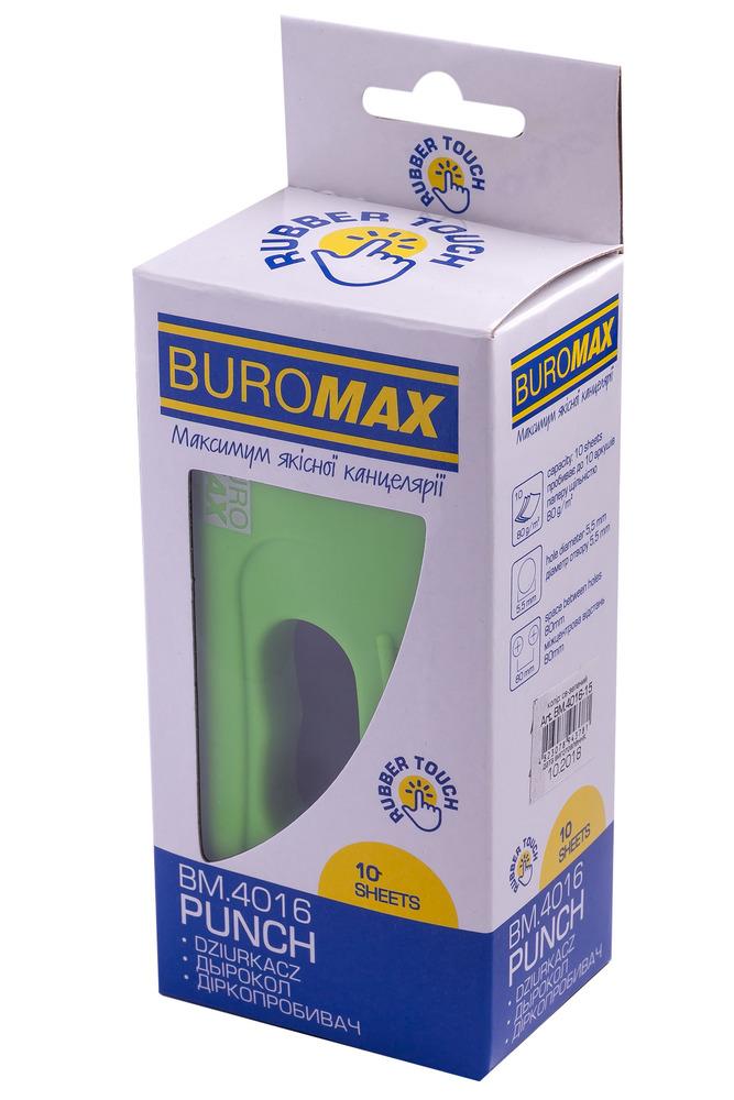 Дырокол пластиковый RUBBER TOUCH(до 10 л.), св-зеленый