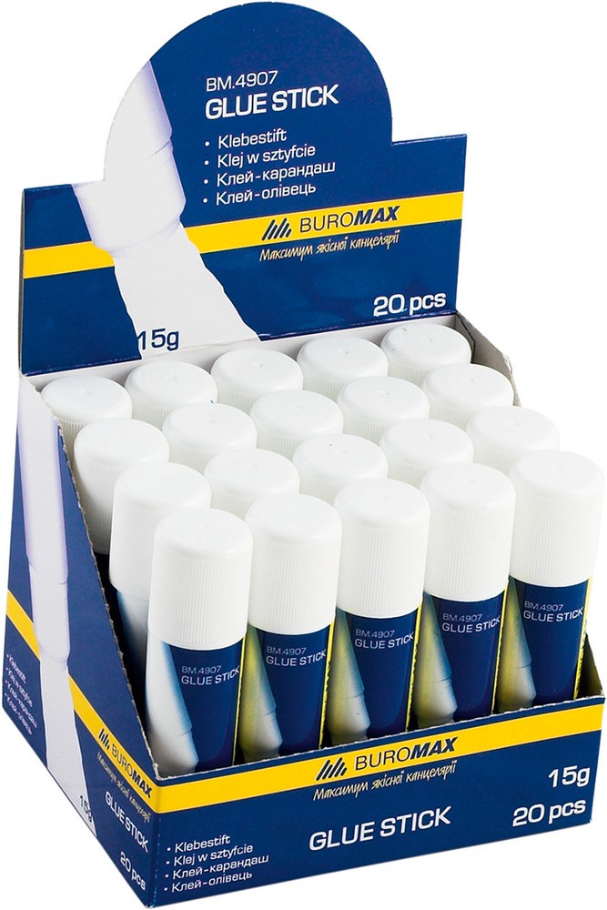 Клей-карандашBUROMAX – станет незаменимым помощником в работе. Подходит для повседневного использования в офисе, для творчества, а также для производственных потребностей - поклейки этикеток, маркировки. Характеристики: объем: 15 грамм для склеивания бумаги, картона, фотографий, ткани (не деформирует поверхности и не изменяет их цвет) колпачок предотвращает высыханию клея на основе PVР (поливинилпиролидон) не токсичен не содержит растворителей без резкого запаха сохраняет клеящее свойство при низкой температуре легко смывается водой BUROMAX – это качество и надежность!