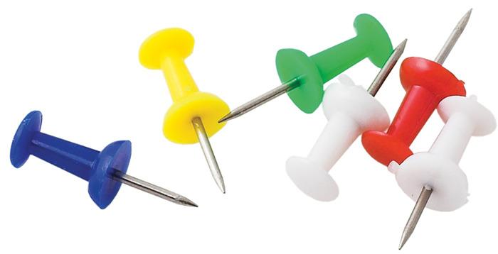 Стильный кнопки-гвоздики цветные BUROMAX предназначены для фиксации информации к пробковым и тканевым доскам. Изготовлены из качественного цветного (белый, желтый,зеленый, синий) пластика цилиндрической формы. Длина иглы: 10 мм. Упакованы в пластиковый контейнер с европодвесом по 50 шт. в цветах ассорти.