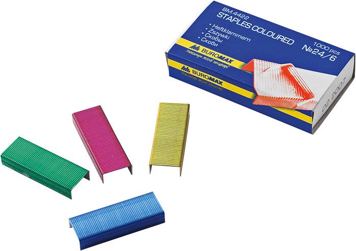 Скобы цветные №24/6 BUROMAX – облегчают поиск и систематизацию документов, выступая дополнительным маркером! идеальны для использования в степлерах BUROMAX прочно скрепляют страницы изготовлены из метала со стойким цветным покрытием упакованы в картонную коробку в количестве 1000 штук