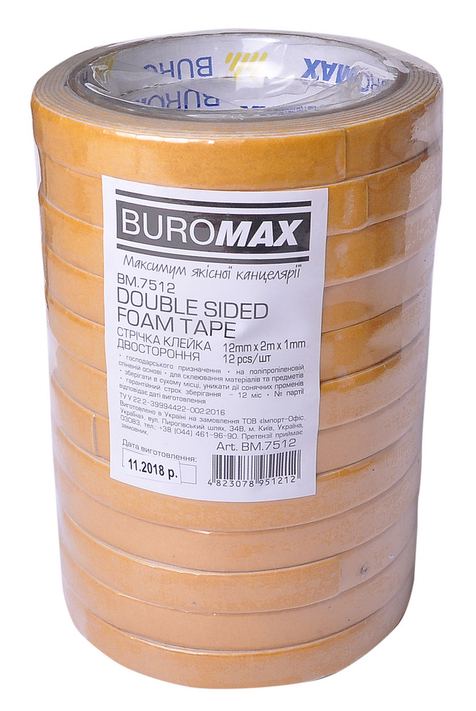 Клейкая лента двухстороння, на пенной основе. Толщина: 12мм. Длина: 2м.