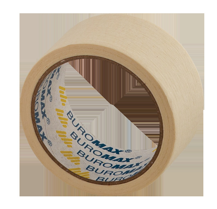 Клейкая малярная лента BUROMAX бежевого цвета – отличный упаковочный материал для оклеивания окон и малярных работ. Термостойкая лента, не оставляет пятен и следов.