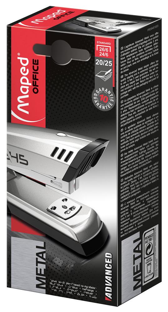 Степлер ADVANCED, металл, 25л., (скобы №24/6; 26/6), серебристый