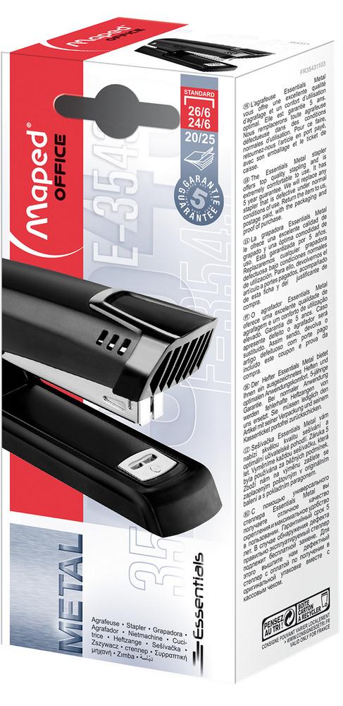 Степлер ESSENTIALS, металл, 25л., (скобы №24/6; 26/6), черный