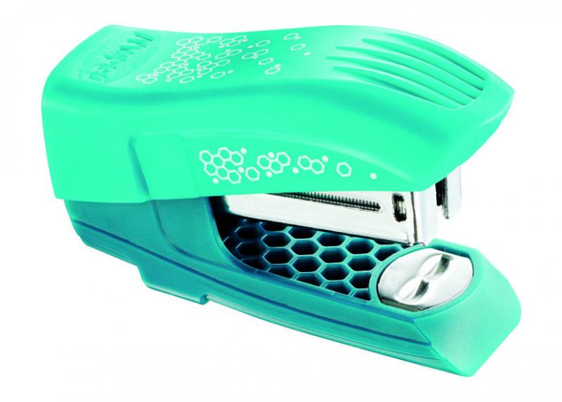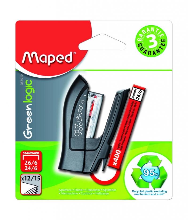экологичный и экономичный, произведён из 95% переработанного пластика экологичная упаковка максимальное количество сшиваемых листов: мини-формат, легко помещается в пенал, сумочку, карман металлический механизм со встроенным антиспеплером вместимость контейнера для скоб: 41шт. №24/6, 58шт. №26/6 глубина закладки бумаги - 28 мм. гарантия: 3 года тип упаковки: блистер