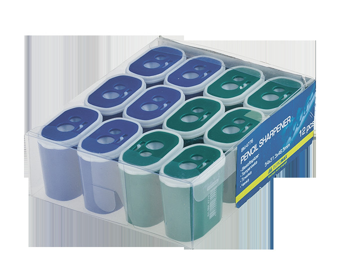 Точилка BUROMAX- простой и надежный способ заточить карандаш. Подходит для офиса, школы и дома. функциональная точилка с двумя отверстиями: стандартное - 7 мм и увеличенной - 12 мм (для карандашей типа Jambo) большой контейнер для стружки система auto-lock – автоматическое закрывание и открывание отверстий для заточки корпус изготовлен из пластика безопасное лезвие из стали цвета: синий, зеленый точилки упакованы в пластиковый контейнер по 12 штук (ассорти) Точилки BUROMAX– это качество и надежность!