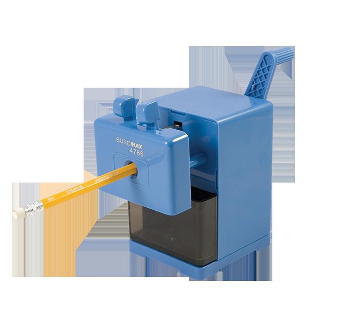 Точилка BUROMAX- простой и надежный способ заточить карандаш. Подходит для офиса, школы и дома. механическая точилка авторегулировка заточки корпус изготовлен из прочного пластика металлическая струбцина для крепления к столешнице лезвие из инструментальной стали цвета: синий, серый Точилки BUROMAX– это качество и надежность!