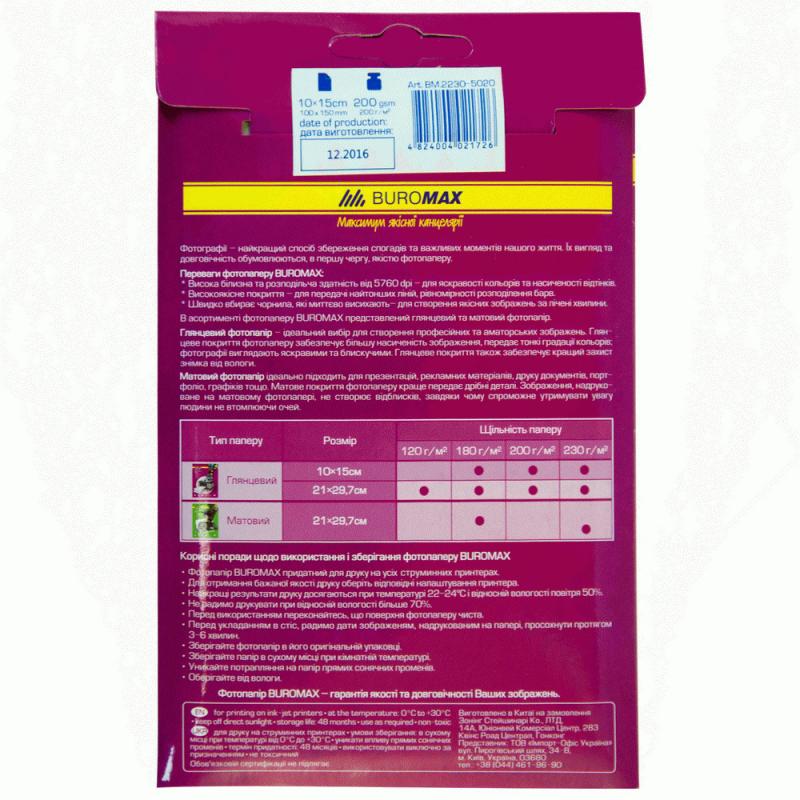 Глянцевая односторонняя фотобумага высшего качества BUROMAX: предназначена для струйной фотопечати любительского уровня, а также, для повседневных проектов в области фотопечати мгновенно высыхающая фотобумага позволяет максимально быстро работать со снимками благодаря гладкой глянцевой поверхности происходит высококачественная передача ярких, насыщенных цветов с множеством оттенков специальное микропористое покрытие обеспечивает высочайшее разрешение (до 5760 dpi)
