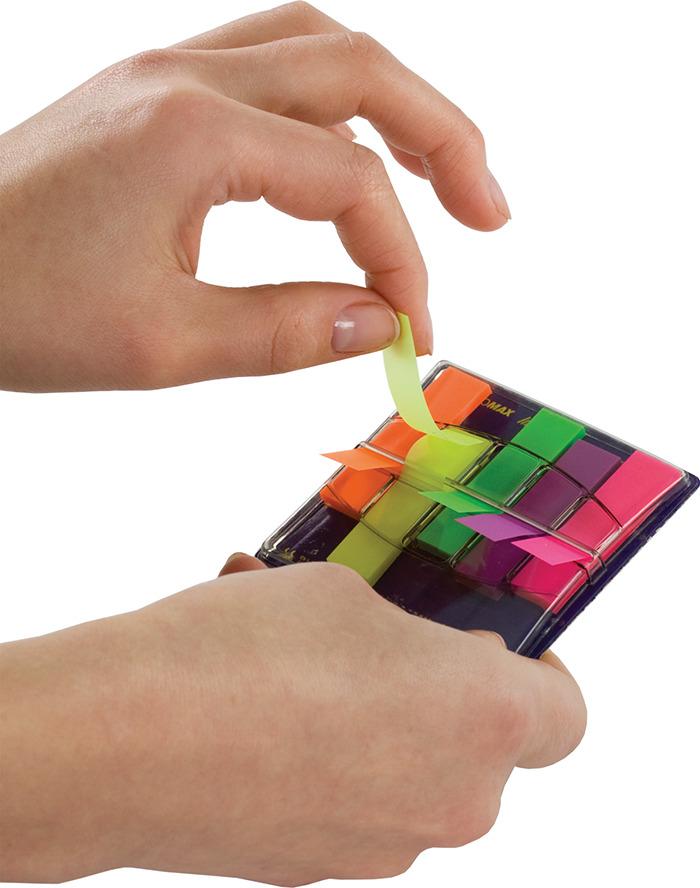 Прозрачные пластиковые закладки NEON POP-UP(5+1) от BUROMAX размещены в удобном пластиком диспенсере, из которого каждая закладка легко извлекается строго по одной штуке. в диспенсере 5 ярких неоновых цветов (+ 1 цвет в подарок) по 40 листов каждого ширина составляет 12 мм благодаря прочному полипропилену, закладки долго сохраняют форму и цвет данные закладки – идеальные помощники в выделении нужной информации помогают легко организовать цветовое кодирование страниц часто выступают в роли закладки в книгах, ежедневниках и документах отлично подходят для нанесения надписей предназначены для многократного переклеивания и не оставляют следов клея.