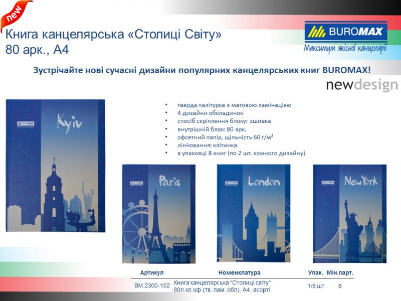 Книга канцелярская "Столицы Мира" - практичный выбор популярных канцелярских книг с интересным дизайном в коллекции BUROMAX. Отлично подходит для решения бизнес задач работников, для школьников, студентов и домашнего использования. Обложка: твердая, ламинирование. Формат: А4. Внутренний блок: офсет, плотность 60 г/м2. Линовка: клетка. Количество листов: 80. Переплет: сшивка.