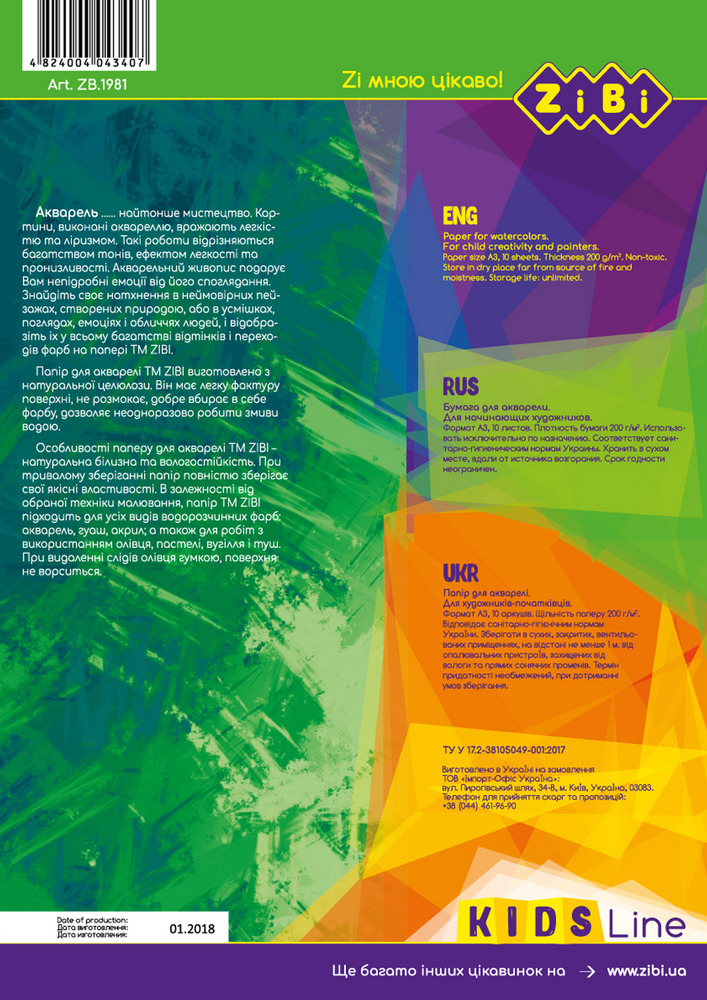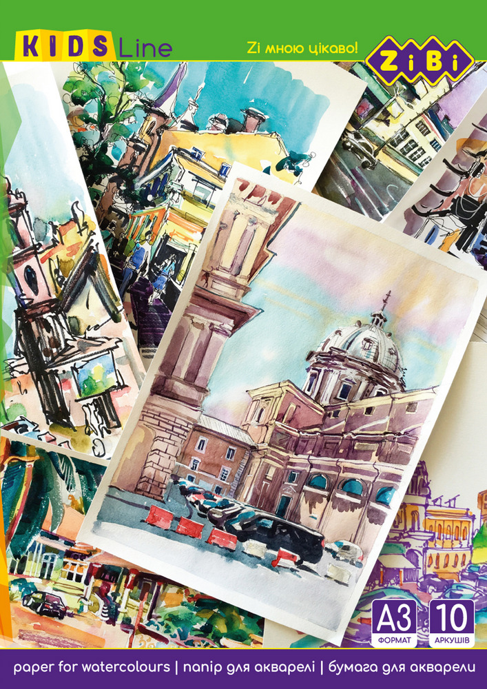 Бумага для акварели ZIBI: папка с 10 листами бумаги из натуральной целлюлозы плотностью 200 г / м2 для рисования красками бумага имеет легкую фактуру поверхности, не размокает, хорошо впитывает краску и позволяет делать при необходимости смывать водой по несколько раз в зависимости от выбранной техники подходит для всех видов водорастворимых красок (акварели, гуаши, акрила), а также для работы карандашами, пастелями, углем или тушью в картонной папке плотностью 230 г / м2 для удобной транспортировки и хранения формат - А3