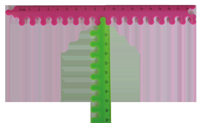 Линейка-пазл пластиковая (2 части по 20 см), розовый с салатовым