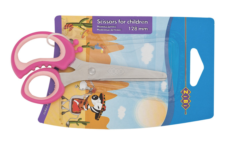 Ножницы 128мм с резиновыми вставками на ручках, розовые, KIDS Line