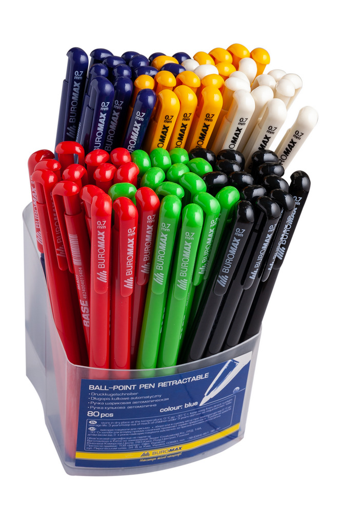 Шариковая ручка JOBMAX от BUROMAX – для офиса, школы и дома. Корпус ручки выполнен из пластика черного цвета с клипом. высококачественные чернила на водной основе для мягкого и легкого письма клип для крепления ручки в цвет корпуса цвет чернила: черный цветовое решение корпуса: черный сменный стержень 40 шт. упакованы в пластиковою тубу. Ручки BUROMAX – отличный пишущий инструмент на каждый день!